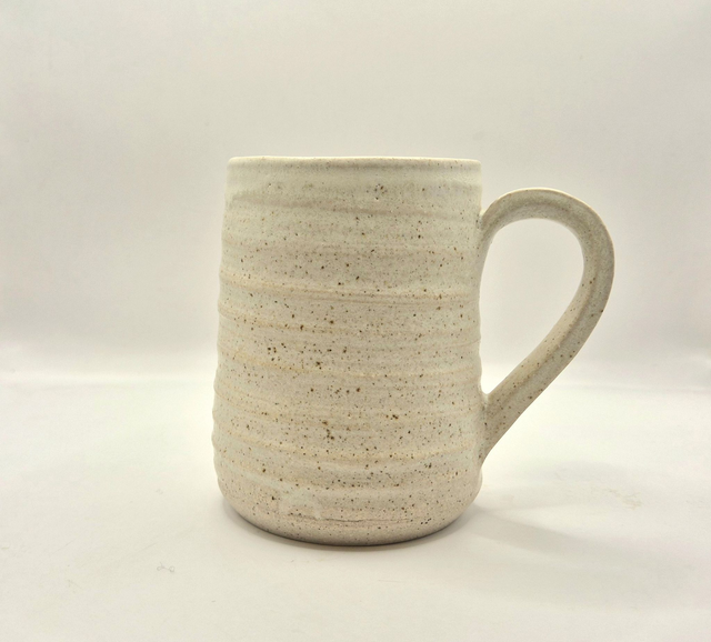 Stoneware mug with a speckle glaze.